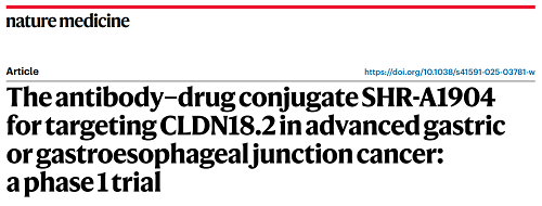 九游会ag医药CLDN18.2 ADC创新药SHR-A1904治疗胃癌临床研究结果荣登Nature Medicine